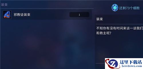 接着我们就需要回去,找收藏家解锁这个邪教徒装束,1细胞就可以解锁,完成以后,重新开始就可以穿上了。