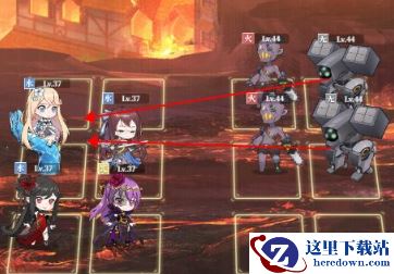 第一章常态火系关卡。把蕾希尔,诺芙伊,玛汀娜,布依吉斯拿出来。
