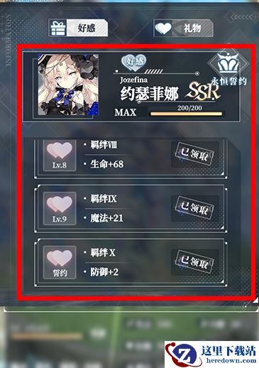 达成好感度,解锁等级可以获得丰富的奖励与角色属性增强。
