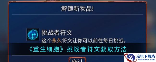 重生细胞挑战者符文怎么获得?在游戏内挑战者符文是非常重要的,这个符文可以让我们前往每日挑战,很多玩家都想知道获取方法。接下来就让小编给大家带来《重生细胞》挑战者符文获取方法,感兴趣的小伙伴一起来看看吧。