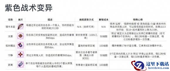 B:武器大师的本能、接纳、受虐狂、脱离战场武器大师的本能属于近战红流会去选择的天赋,比如刺客流。相对于杀戮天性来说,武器大师的本能可以用月BOSS战,但是如果不能稳定维持暴击率,在跑图方面就不如杀戮天性好用。接纳可以减少诅咒的数量,如果你想拿诅咒宝箱又对操作没有自信的话,可以带一个接纳减低难度,最后BOSS战换掉即可。受虐狂适用于遇见陷阱疯狂掉血的选手。脱离战场并不能防止流血中毒等效果,低于20%血量120秒触发一次也显得这个变异非常鸡肋。(不排除之后的版本会对这个天赋进行加强)