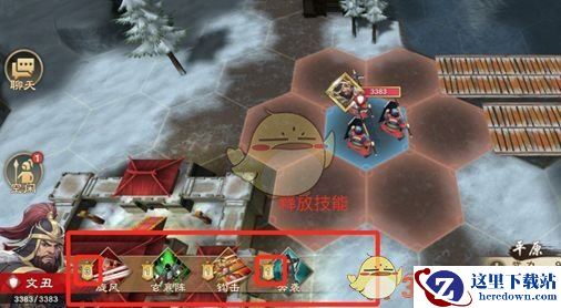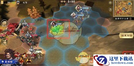 玩家指挥自己的棋子,在地图上的棋格上进行移动,武将自身移动力决定可以行动的范围
