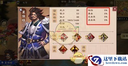 且根据兵种不同,会增加或减少不同的四率(格挡率、暴击率、反击率、夹击率)