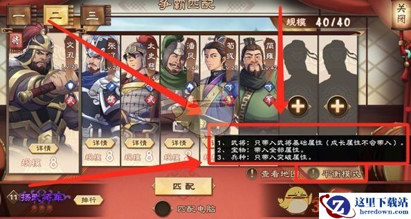 如图所示,简单来说,就是同样的武将,不管你多少级,不管你在pve里属性有多么爆炸,到了平衡模式里,大家的属性都几乎一样!