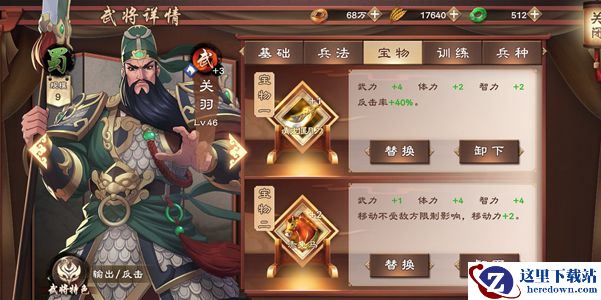 武将等级抵达20级后,可装备两个宝物,同一武将不可装备同类型的宝物