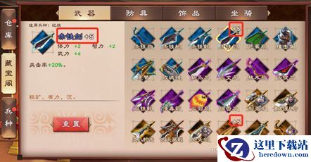 例:吕布在装备了方天画戟之后,第二件装备只能选择符合条件的防具、饰品、坐骑,不能左手方天戟,右手丈八矛~