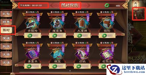 * 商店→限时中每小时会随机刷新8个宝物卷轴,蓝、紫、橙均有概率出现,全服同步,其中,蓝色装备卷轴价值250玉币,紫色1000玉币,金色2000玉币