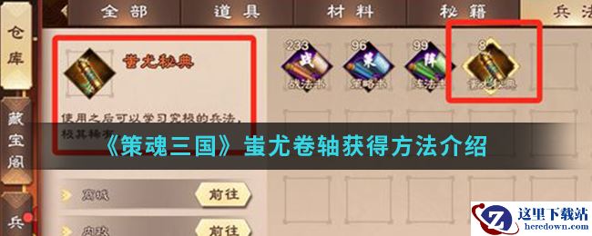 以上就是小编整理的《策魂三国》蚩尤卷轴获得方法介绍,想知道更多相关资讯攻略的请关注这里下载站。