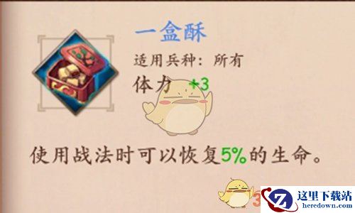 一盒酥是策魂三国中的宝物之一,很多小伙伴对于这个宝物的属性技能不太了解,那么小编就给大家介绍一下这个宝物,下面小编给大家带来《策魂三国》一盒酥属性技能图鉴一览,还不清楚的小伙伴赶紧来看看吧。