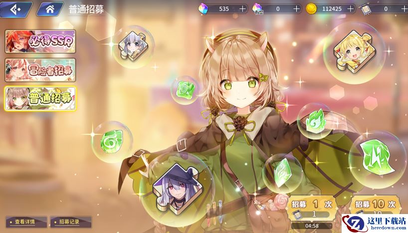 4、【普通招募】是获取碎片的招募卡池,但也有3%的几率爆出SR角色,每日也有5次免费的机会,大家记得用玩即可。