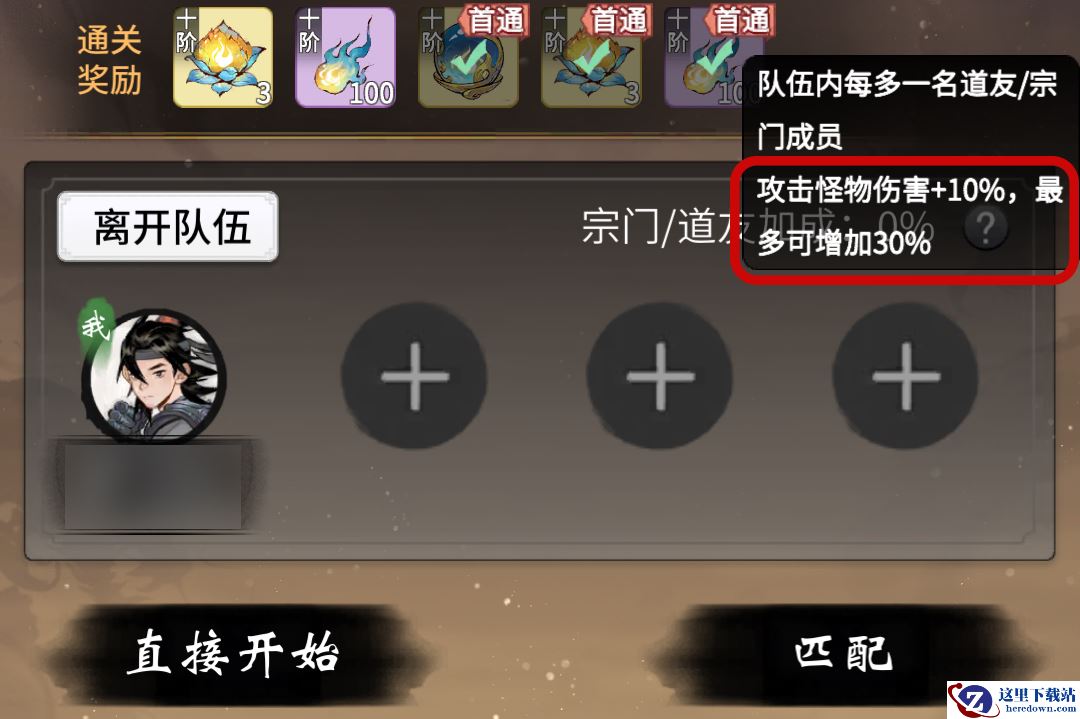 队伍建议是同宗门的四个成员,使每个人都能得到增伤30%的效果。推荐选择三法修一体修,法修在面对群怪时有优势,体修主要负责攻击物攻弱点怪和单个高伤害的妖王。