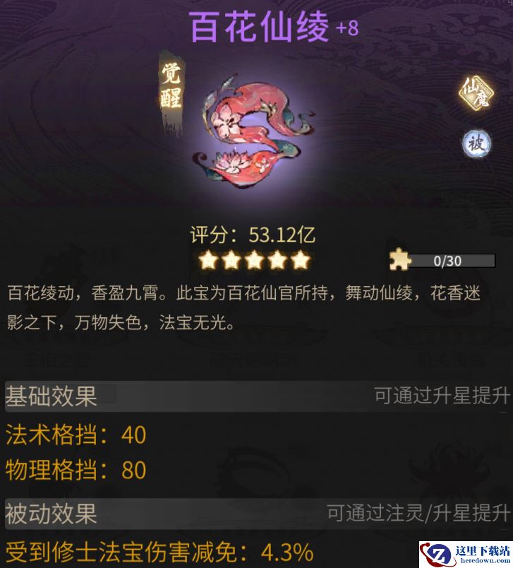 百花仙官化瑶池灵花为“百花仙绫”,绫上花纹绮丽,香盈九霄,可使万物失色,法宝无光。