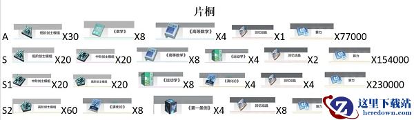 2、S级需要:低阶剑士模组20、中阶剑士模组20、高等数学、8、运动学4、回忆结晶2、算力154000。