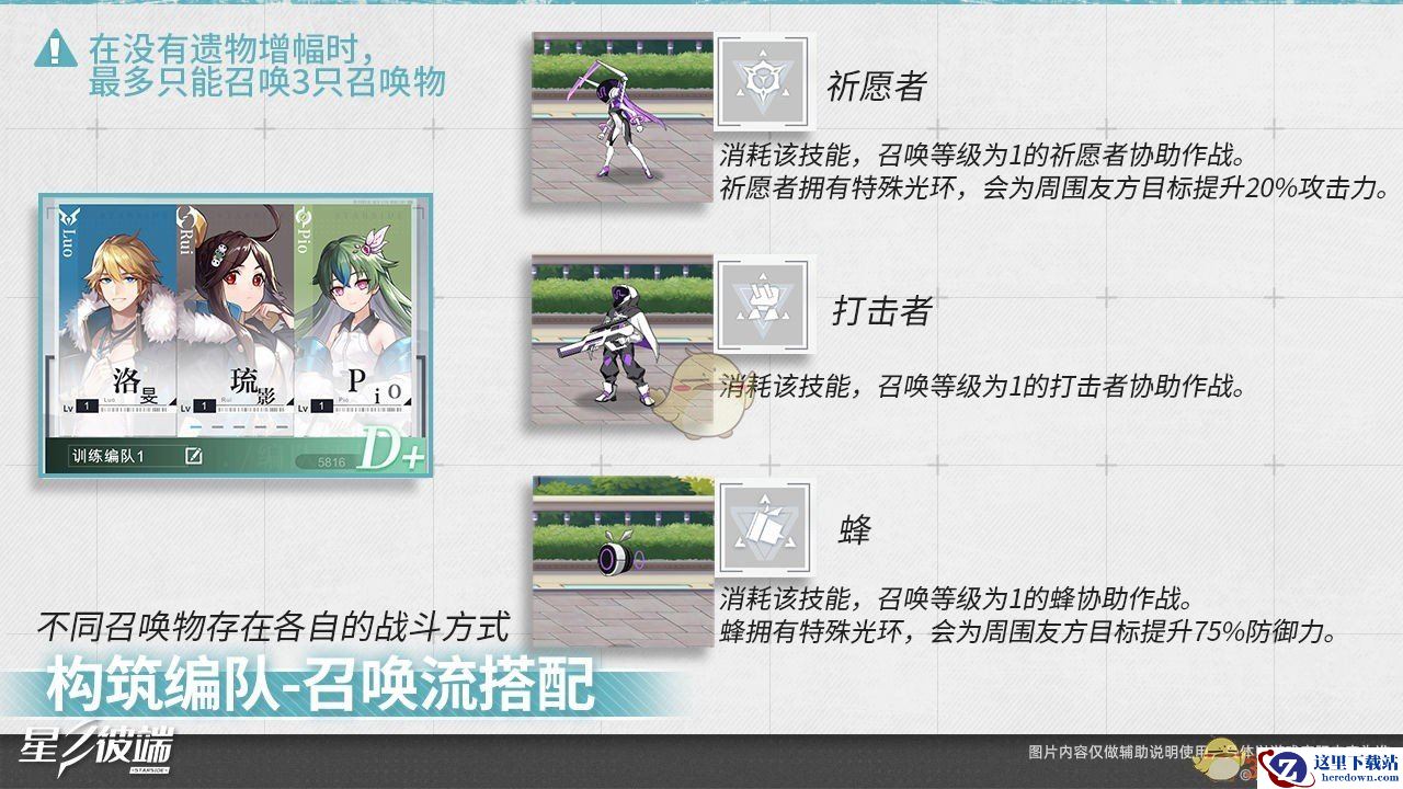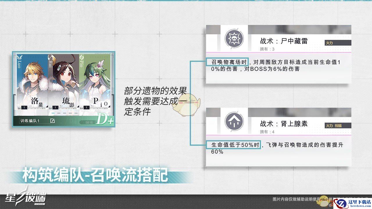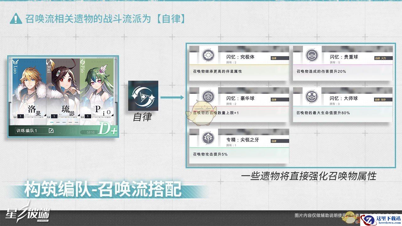 构筑该类编队时,星使需在遗物区域内选择描述中带有“召唤物”的遗物