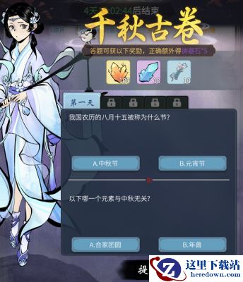 参与千秋古卷答题活动,可获得天机石、铸器石等奖励题目皆与中秋相关;