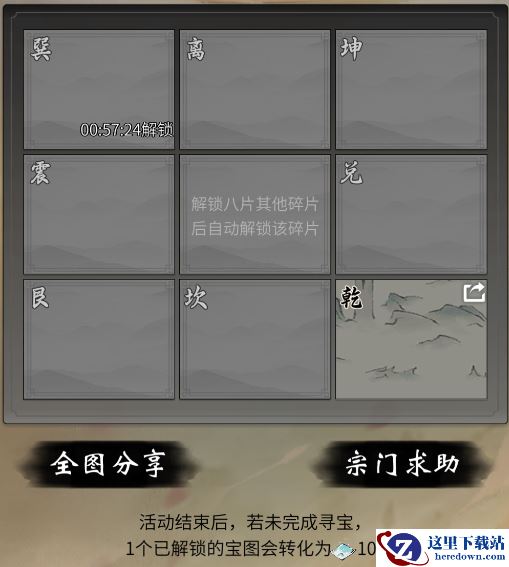 1.目前不知道是宗门常驻活动还是限时活动,总体玩法方式为解锁宝图碎片,每个小时解锁一张,也可以通过同宗门分享至宗门频道获取宝图碎片!