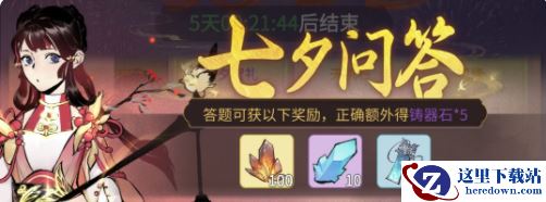 1、七夕问答,玩家可连续五天参与问答获得奖励。