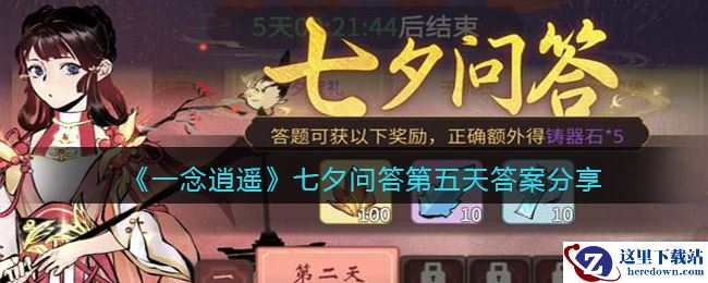 一念逍遥游戏中七夕活动即将开启,其中会上线问答题目,答案也比较简单,那么2022年七夕问答第五天答案是什么呢?下面是小编给大家带来的一念逍遥七夕问答第五天答案分享2022,感兴趣的小伙伴们一起来看看吧。
