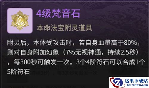 效果为自身收到攻击则获得增益(抵挡目标神通、法技伤害),和封灵石一样,每次对战都能触发,虽然效果和封灵石一样,但是一个负面状态一个是增益!目前大多数神通效果多少带点净化(驱散减益)效果,而带驱散(移除增益)的缺很少!