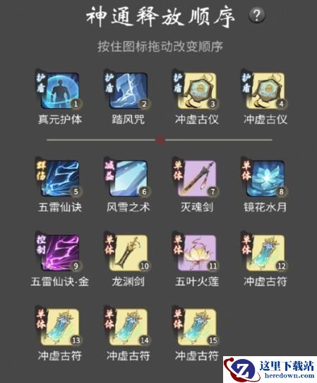 学了御龙水之后可以替换掉踏风或者真元其中一个,如果抗伤压力没那么大就选择【真元+踏风+仪】或者【真元+御龙水+仪】切记要带真元,不然一定会出现断盾的情况。*神通顺序仅作参考,实际情况还得根据各位道友的对手和自身条件来做调整