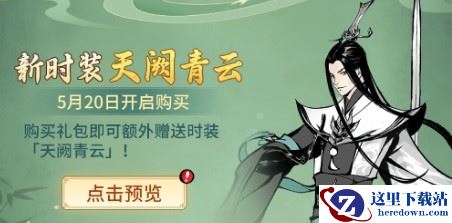 天阙青云是端午节新时装,5月20号开启购买,买礼包即可额外赠送时装天阙青云。