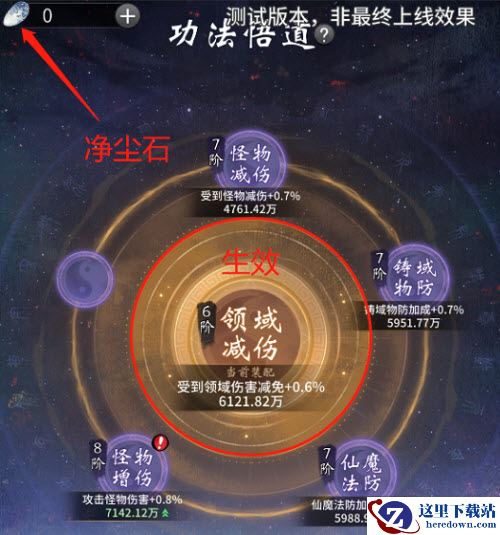 大家在激活这个新功能之后,可以消耗材料:净尘石来进行感悟,此时将会随机生成一个特殊属性,五个备用格子,选择其中一个特殊属性替换来装配此特殊属性才能生效,如果对于五个特殊属性不满意可以清除后继续进行悟道。