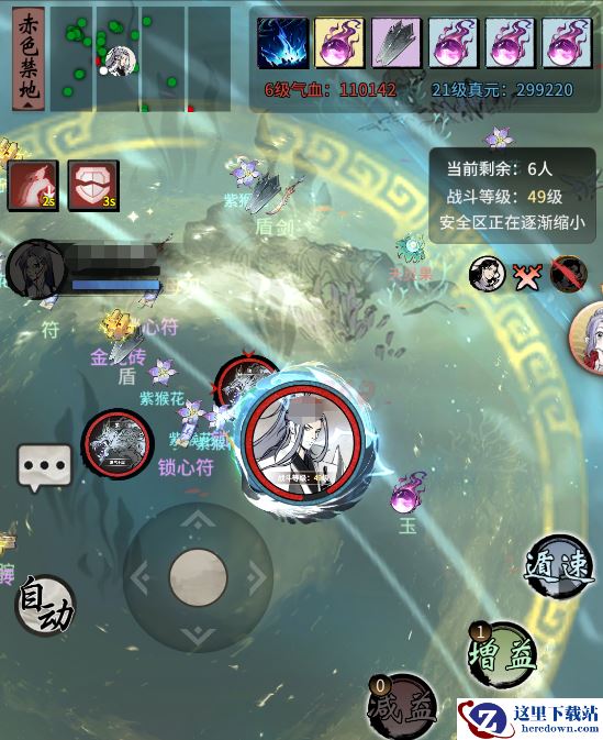 2、地图中还散布了不同的可增强气血和真元的丹药,拾取后可提升自身战斗能力。(可以理解为吃鸡玩法中的头盔、防弹衣)