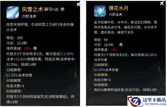 风雪和镜花整体秒伤还是很够用的,但是功能性有限,并且蓝耗颇高,综合来看优先级一般。