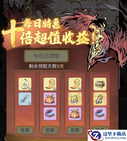 2、每日特惠的价格为98元,每天上线领取收益,十天的总收益为:天命:900,修为福袋:30,修为秘药:40,赐福令:25(满100次天命赐福后为赐福令*15、神兽赐福令*10),主动古宝碎片:50。