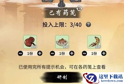 明目方:灵芝数量为玄黄的两倍(材料总合上限为8)