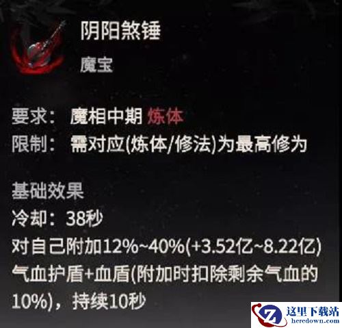 1.在大乘的仙魔法宝出来后,魔体的阴阳煞锤还是有一定可玩性。