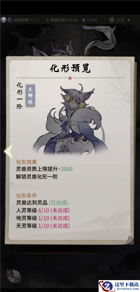 2、要是玩家的灵兽符合上述的化形条件,就会有化形机会,反之没有只能预览了。