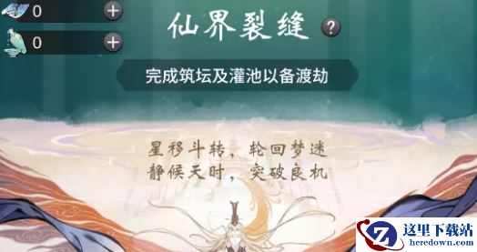 1、仙界裂缝的星痕淬体和万世轮回,为渡劫/涅槃期开放,而进阶渡劫则需要修复位于仙界裂缝中的星宿坛和轮回池,再等待渡劫开放的倒计时结束,即可进行渡劫,从而进阶至渡劫/涅槃境界。