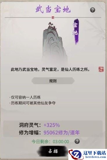 2、宝地、禁地仅可容纳1人,任意仙友均可占据,也可被其他仙友争夺。