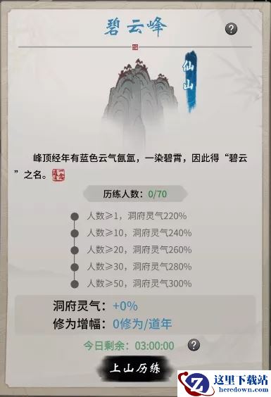 在活动第一天就开放,可多人同时上山历练,历练效果会根据历练人数进行增幅,增幅的灵气效果在220%~300%不等。