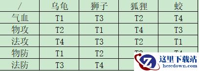 法攻:蛟>狐狸>狮子>乌龟
