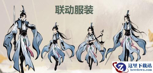 联动服装以武当山道士的修炼服为灵感,融入太极元素,配色以蓝白为主。
