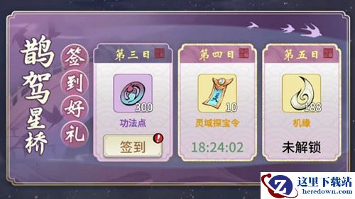 活动期间只需要每日前往鹊桥签到就能获取大量功法点、探宝令、机缘~