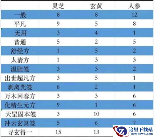 1、太清方药方是133,也就是1个灵芝+3个玄黄+3个人参。