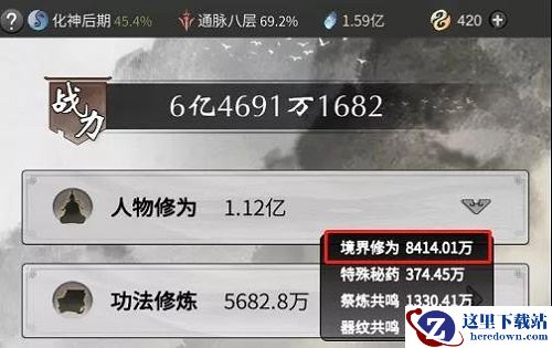 游戏中的修炼速度是你最高境界越高,灵气吸收率越高,突破大境界获得的属性价值远远高于双修低境界获得属性!