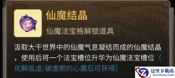 每种方向都有独有的仙魔法宝(目前每个方向只有一种类型法宝,后续会增加更多类型),仙魔法宝可以通过自己炼制和心魔宝箱赠送获得。