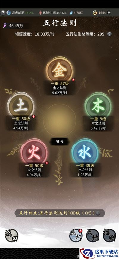 前几天存够真言再点天地法则,天地需求的道法点数不多 优先发育五行法则