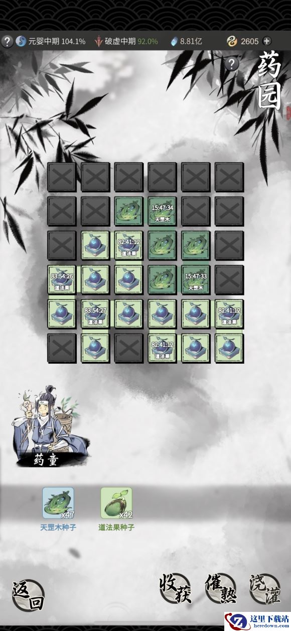 不买道法果礼包的只种1-2藤配合壶做金装剩下的全种道法果,(本命7阶以下分2个天罡木位置)