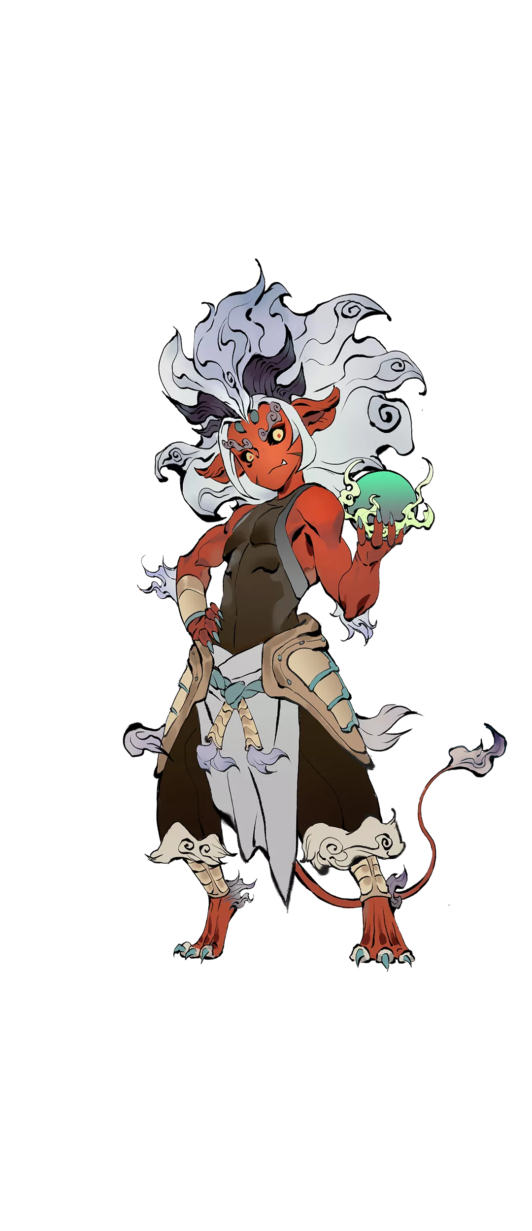 当紫炎龙狮打通灵脉,历尽天劫后,它将蜕为人形,修为大幅上升。看那干练的装束和锋利的爪子,无不体现着他面对妖兽与邪修的凶狠果决。当然,作为一只狮子,他在化形之后依然不忘自己最心爱的像小球一般的香囊,始终将它带在自己身边。毕竟猫科动物,你懂的~