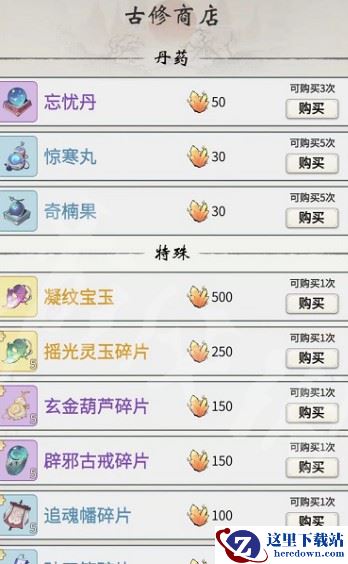2、古修商店里面会与一些特殊丹药和道具都是可以兑换的。