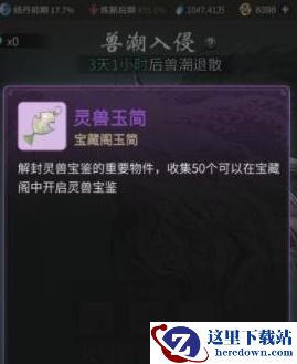 3、灵兽玉简,一种解封灵兽宝鉴的重要物件,收集50个可以在宝藏阁中开启灵兽宝鉴。