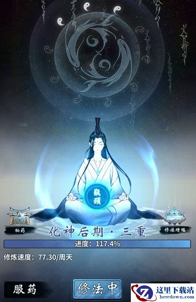 这里可以进行当前修炼路线的更改、吃修为丹药以及吐纳。