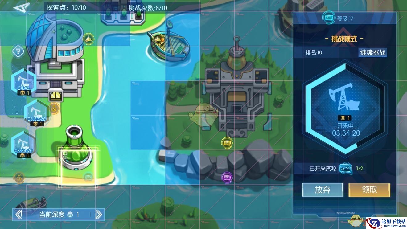 占橙万能碎的资源地,没打到,依据蓝色的来看普通8小时一个,挑战8小时两个(可能以后深度越高,给的能多些),普通同时采集两个,通行证3个