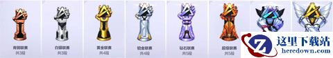 青铜联赛,白银联赛,黄金联赛,铂金联赛,钻石联赛,超级联赛,传奇联赛,阿尔法骑士。