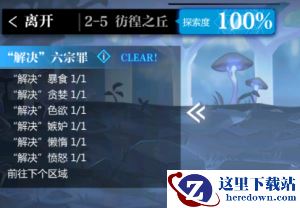 2、解决6宗罪之后探索度达到100%,前往下一个区域。